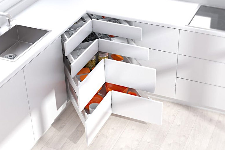 System szuflady narożnej, który ułatwi korzystanie z pozornie niedostępnych miejsc.