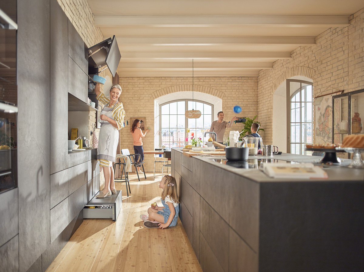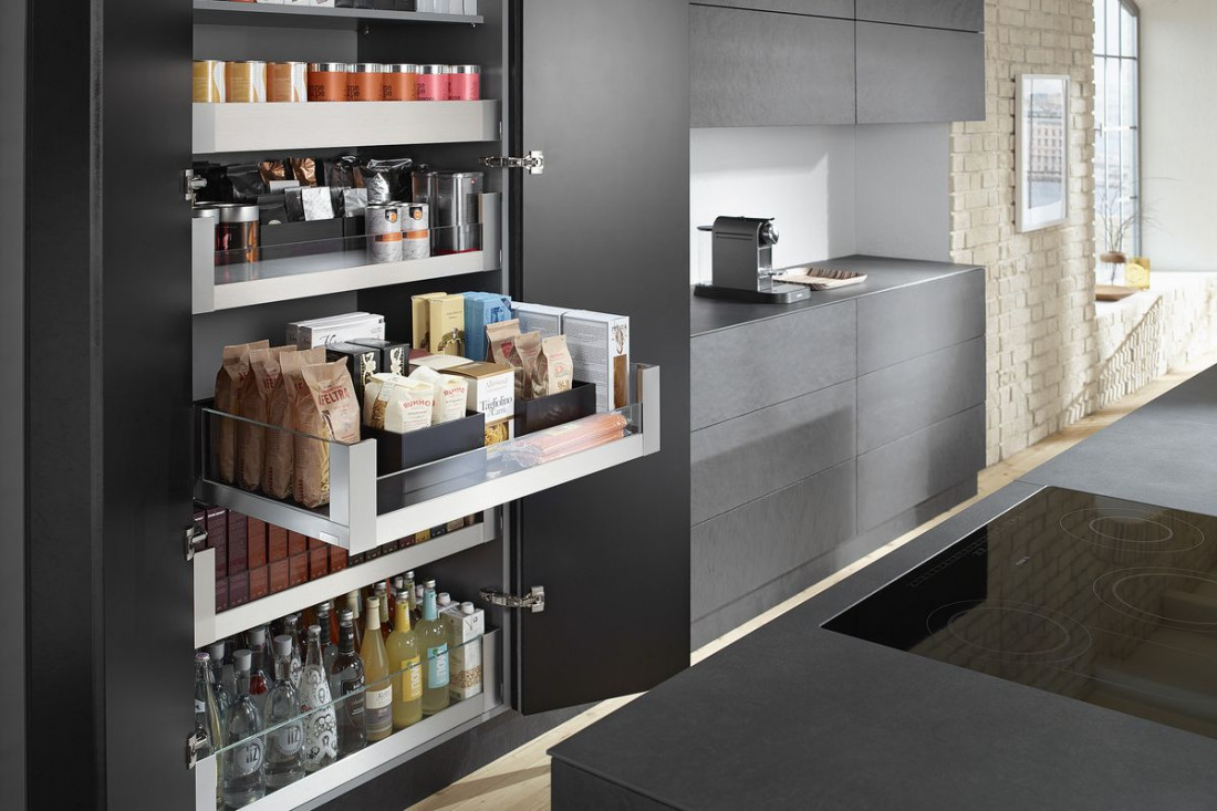 Dzięki wysuwanej szufladzie, która tworzy stopień, wysokie szafki będą bardziej dostępne.