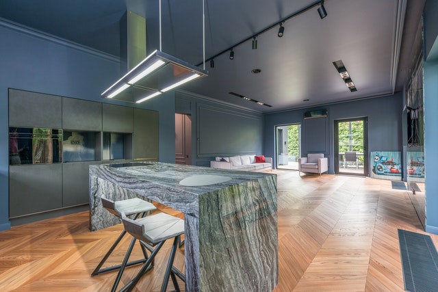 Konglomerat marmurowy lub kwarcowy to idealny zamiennik kamieni naturalnych. Niepowtarzalność wzoru nadaje całemu wnętrzu unikatowość.